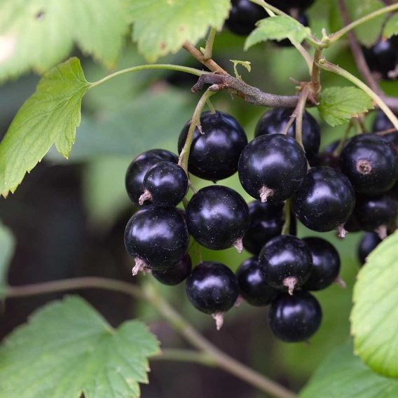 Porzeczka czarna 'Titania' to jedna z najczęściej uprawianych odmian, ceniona za wysoką odporność na choroby i obfite plonowanie.